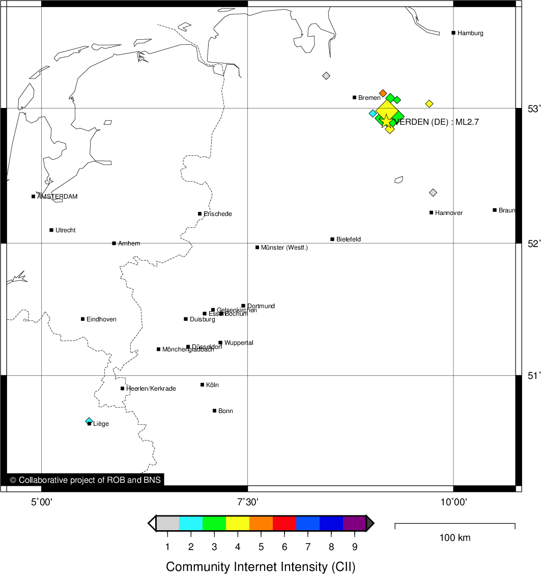 Waarschuwing! De intensiteiten afkomstig van de macroseismische enquête zijn ruwe gegevens die nog niet geverifieerd werden.