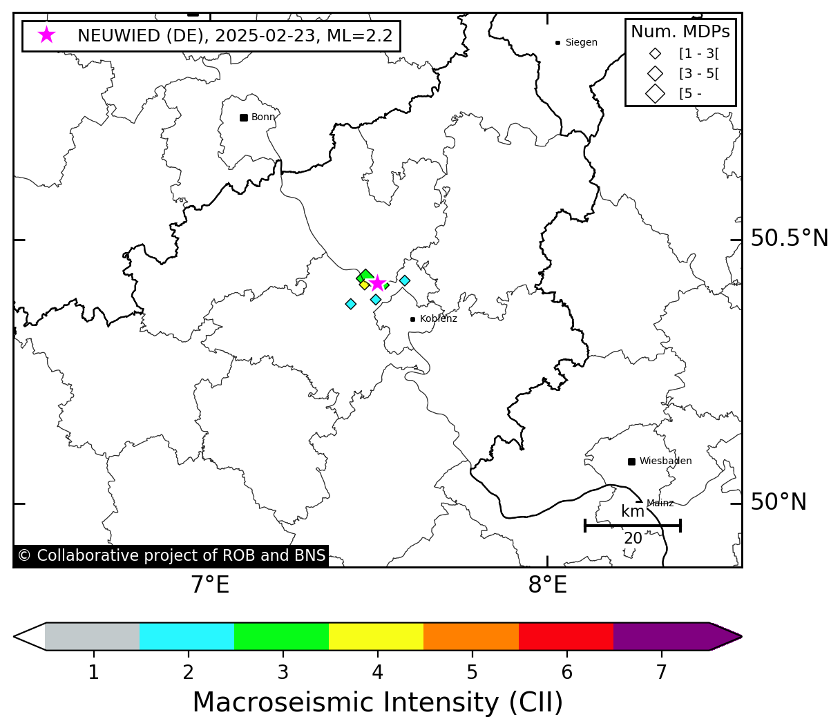 Metingen door het Duits seismometernetwerk van het aardbevingsstation Bensberg (Universiteit van Keulen, Duitsland)