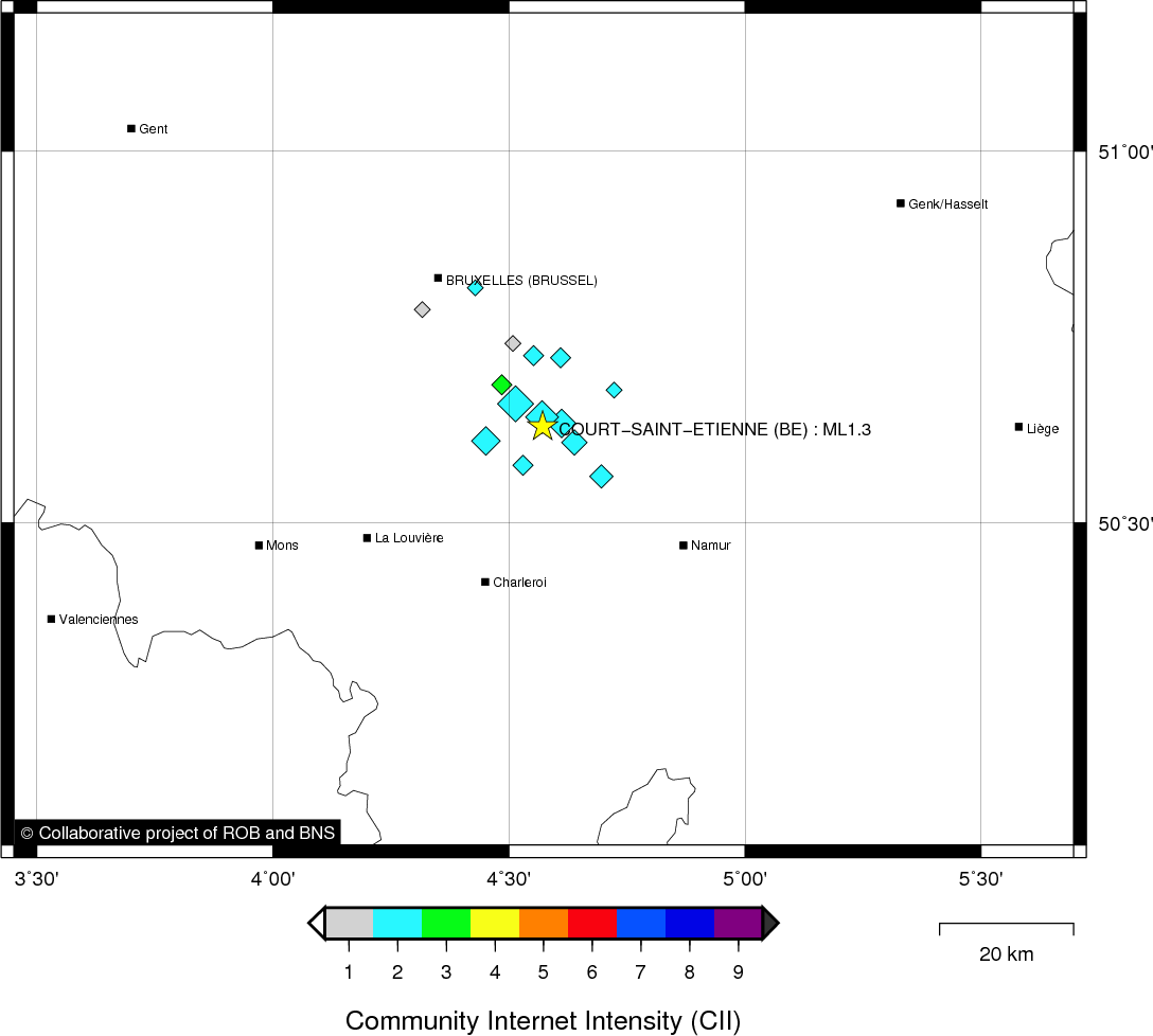 Waarschuwing! De intensiteiten afkomstig van de macroseismische enquête zijn ruwe gegevens die nog niet geverifieerd werden.
